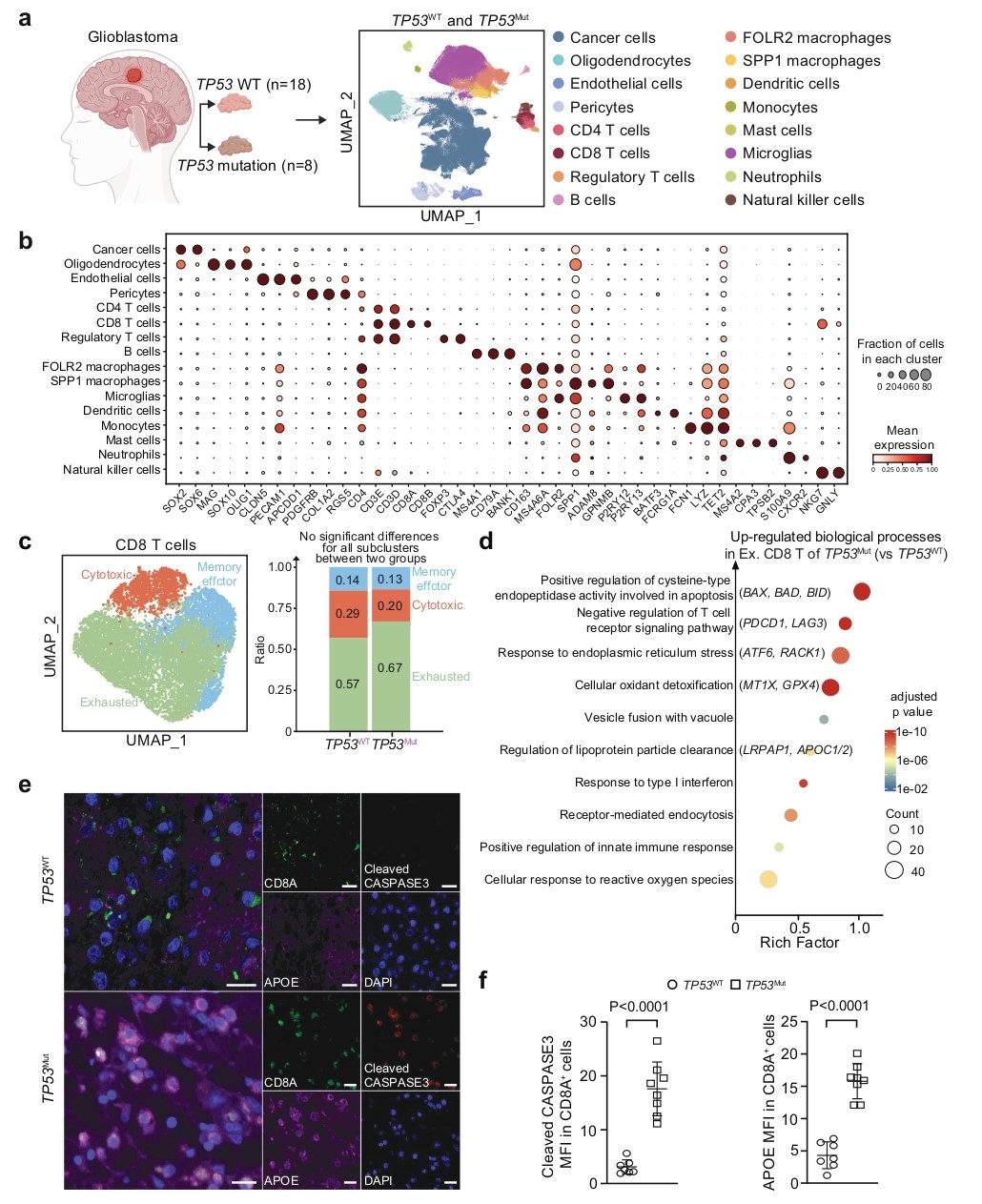 Figure 6. Infiltrating T Cells in TP53-mutated human GBM uptake APOE lipid particles and undergo apoptosis