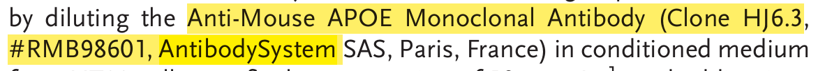 This study cited AntibodySystem's Anti-Mouse APOE Antibody (HJ6.3) (Catalog #RMB98601) used as an APOE inhibitor in in vitro cell experiments. Results demonstrated that neutralizing APOE protein function significantly suppressed neuroinflammatory responses in microglia and the activation of related signaling pathways.
