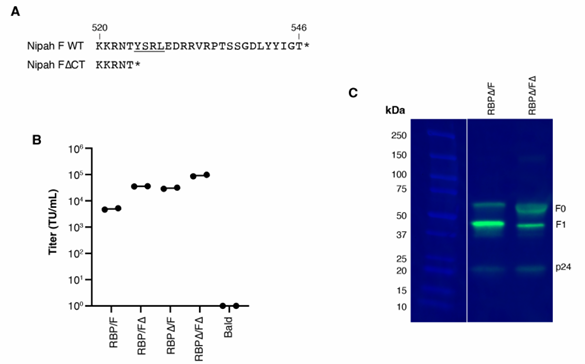 This study cited AntibodySystem's Anti-Nipah virus/HeV F/Fusion glycoprotein F0 Polyclonal Antibody (Catalog #PVV08101) in WB experiments to validate the expression and cleavage of cytoplasmically tail-truncated Nipah virus F protein in the pseudovirus system. Experiments confirmed that the truncated F protein was effectively cleaved to generate the F1 subunit and successfully incorporated into viral particles, supporting the reliability of the subsequent deep mutational scanning system.