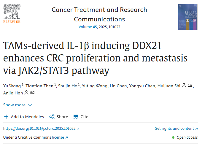 TAMs-derived IL-1β inducing DDX21 enhances CRC proliferation and metastasis via JAK2/STAT3 pathway |