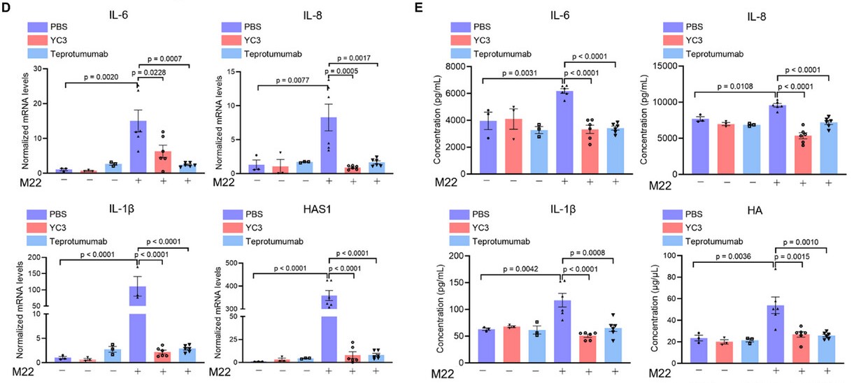 This study cited AntibodySystem's Research Grade Teprotumumab (Catalog #DHC29903) as a positive control, comparing its effects with those of YC3. The antibody showed significant inhibition of inflammatory responses and hyaluronic acid synthesis in Graves' orbital fibroblasts, further validating its potential as an effective biologic for treating Graves' ophthalmopathy.