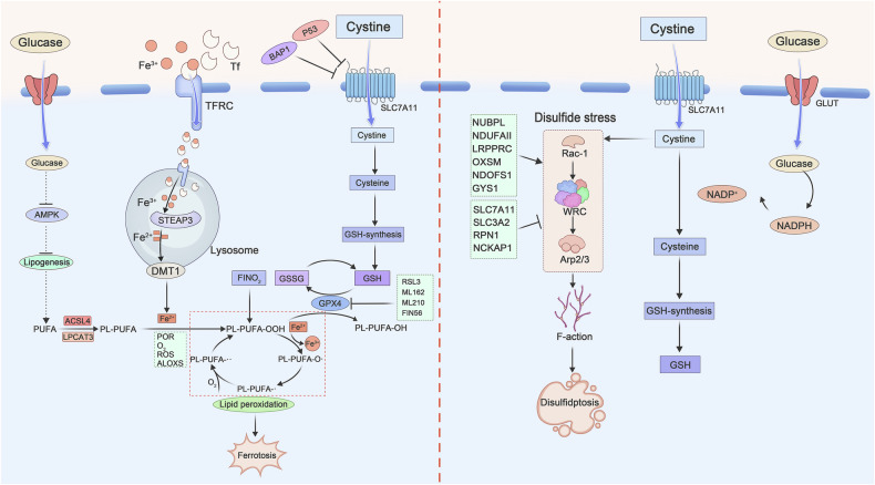 Fig 4. Molecular mechanisms of ferroptosis and disulfidptosis (Cell Death Discov. 2025 Apr 28;11:205.)