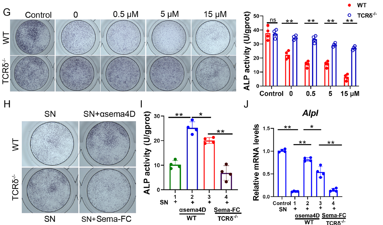 The article cited AntibodySystem's Anti-Mouse CD100/SEMA4D Antibody (SAA0332) (Product Code: FMJ33910). Through in vitro osteoblast differentiation experiments (ALP staining and activity analysis), it was confirmed that this antibody can effectively block the inhibitory effect of soluble Sema4D (sSema4D) released by γδ T cells on osteogenic differentiation, thus clarifying that sSema4D is a key pathogenic factor leading to bone regeneration disorders in BRONJ.