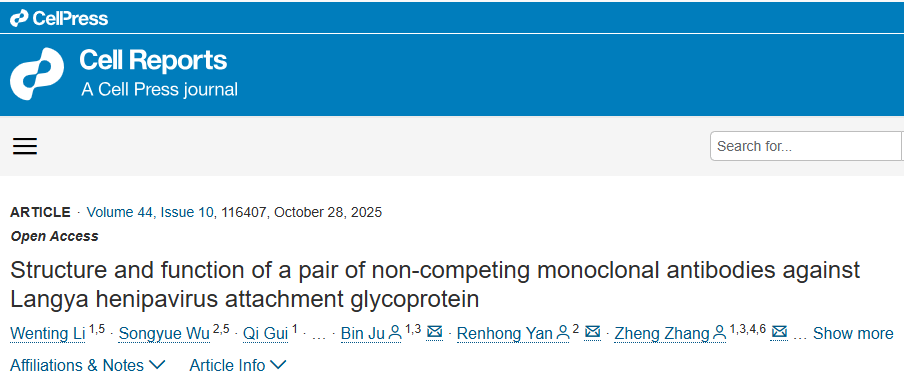 Structure and function of a pair of non-competing monoclonal antibodies against Langya henipavirus attachment glycoprotein |