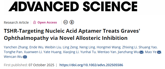 TSHR-Targeting Nucleic Acid Aptamer Treats Graves' Ophthalmopathy via Novel Allosteric Inhibition |
