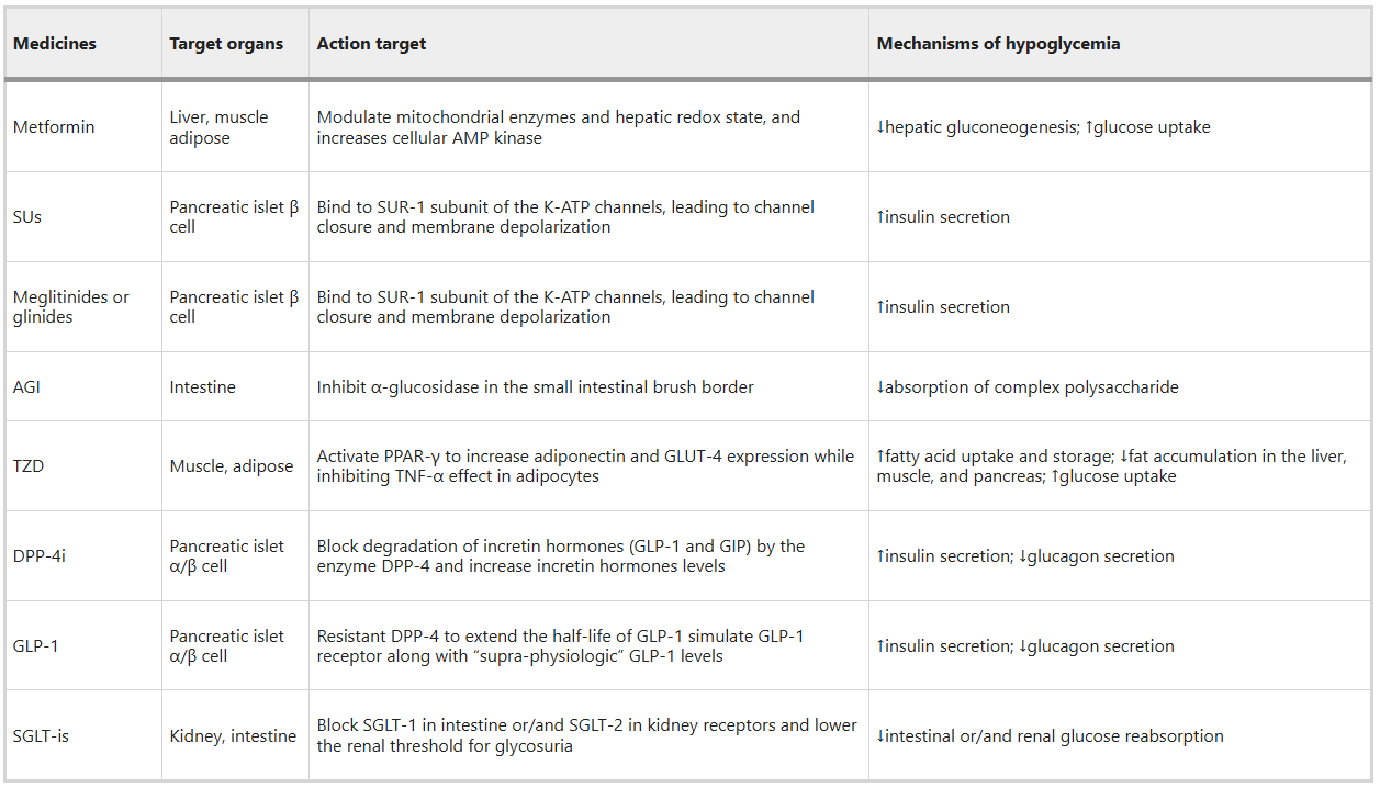 Fig 5. Targets and mechanisms of hypoglycemic agents (Signal Transduct Target Ther. 2024 Oct 2;9(1):262.)