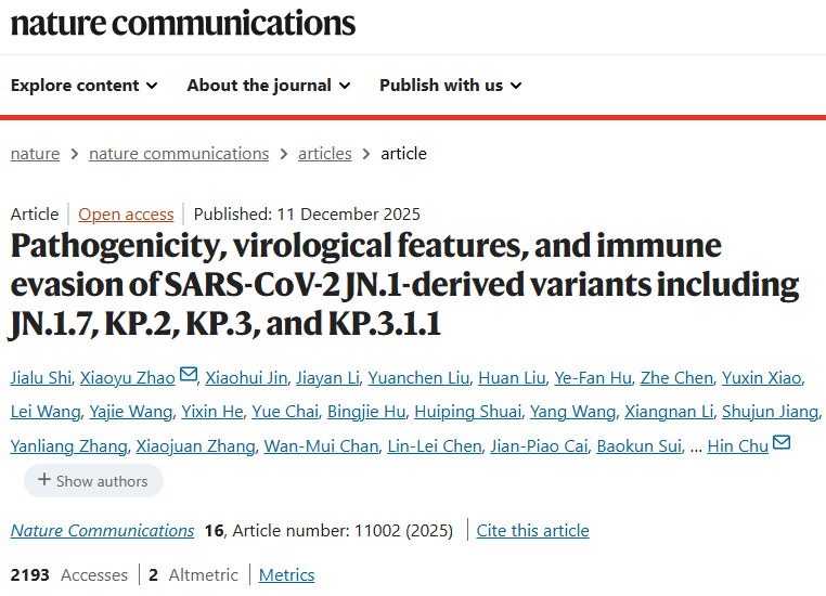 In December 2025, multiple AntibodySystem products were cited in high-impact international journals, including Nature Communications and Advanced Science. These studies span cutting-edge research the pathogenicity and immune evasion of SARS-CoV-2 JN.1-derived variants, anti-tumor mechanisms of marine terpenoids targeting UBE2C, development of influenza/COVID-19 hybrid vaccines, regulation of erythropoiesis, and precision vaccine design for osteoporosis.