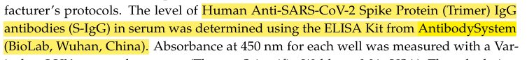 AntibodySystem’s Anti-SARS-CoV-2 Spike Protein (Trimer) Human IgG ELISA Kit(CATALOG: KAV00109 was used to quantify serum anti-SARS-CoV-2 antibody levels in long COVID patients, providing key evidence linking antibody responses to demyelination and neuropsychiatric symptoms.