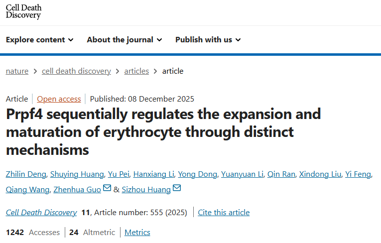 Prpf4 sequentially regulates the expansion and maturation of erythrocyte through distinct mechanisms