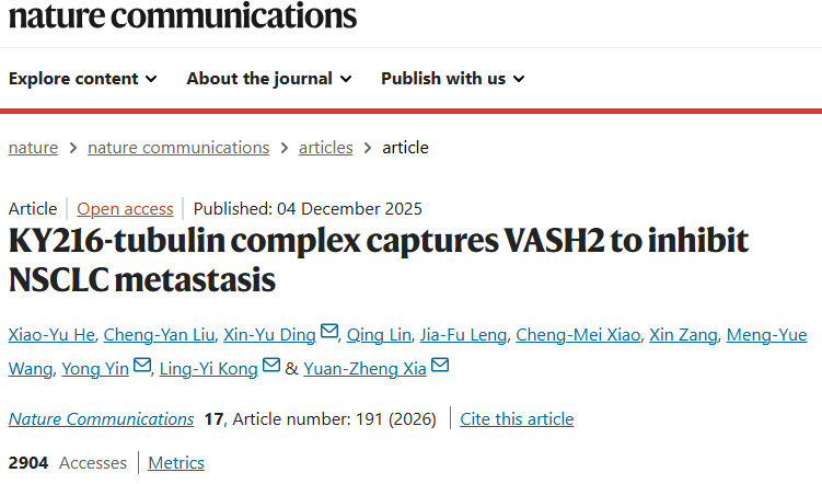KY216-tubulin complex captures VASH2 to inhibit NSCLC metastasis