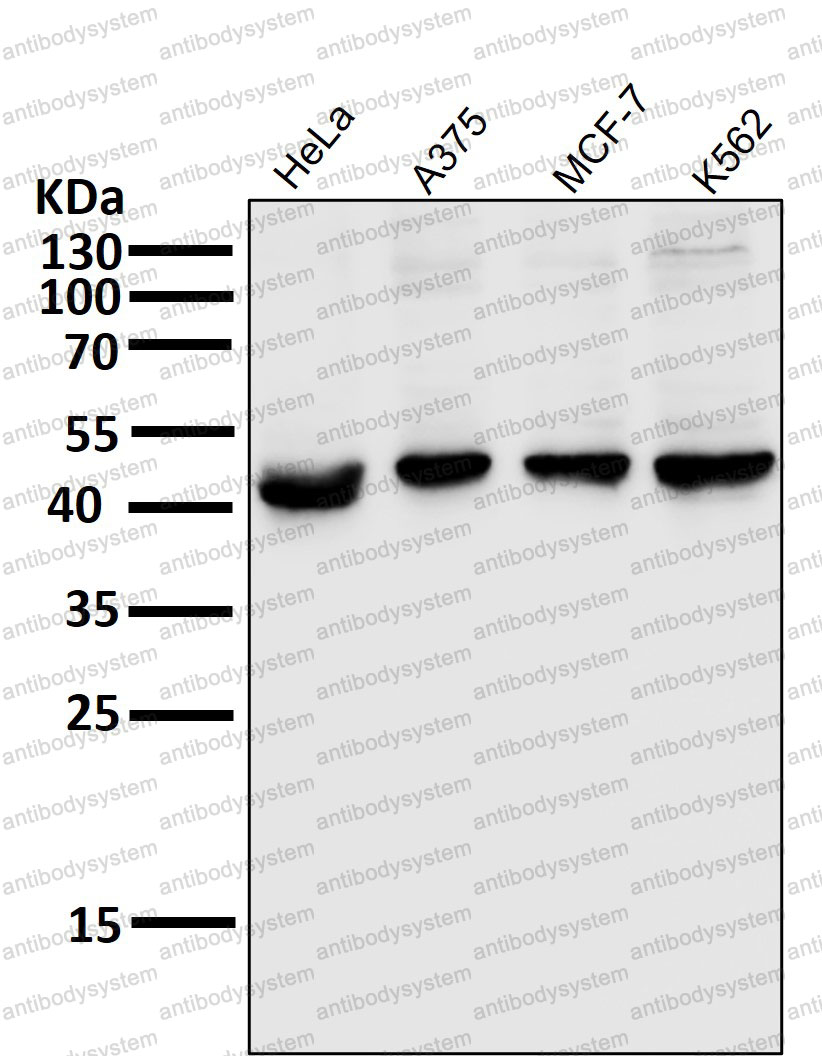 FCM: 1:20-1:100, IF: 1:50-1:200, IHC: 1:100-1:200, IP: 1:20-1:50, WB: 1:1000-1:2000