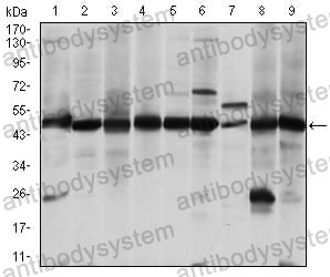 ELISA: 1:10000, FCM: 1:200-1:400, IF: 1:200-1:1000, WB: 1:500-1:2000