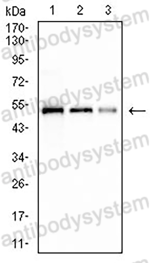 ELISA: 1:10000, FCM: 1:200-1:400, IF: 1:100-1:1000, IHC: 1:100-1:1000, IP: 1:20-1:200, WB: 1:500-1:1000